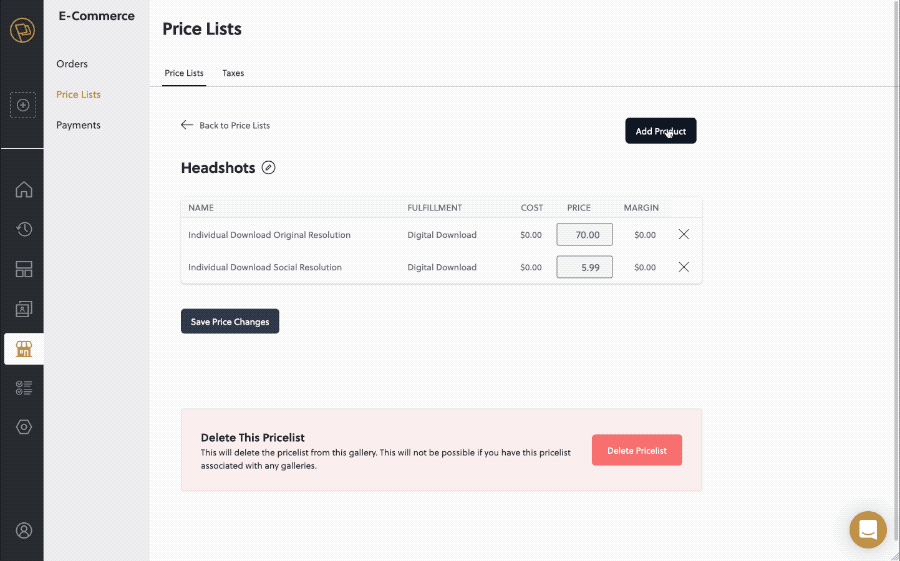 There are two more digital download products available to you now, giving you the flexibility to add a combination of individual downloads and full-gallery purchases for your customers. The product selection process will now be in the slide-out drawer to improve on the experience of adding additional products to the price list.